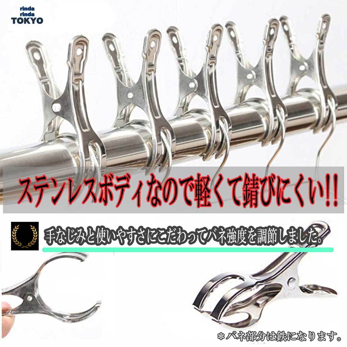 ・材質がステンレス製で出来ているため、プラスチックタイプの洗濯ばさみと比べ強度も高く、屋外に洗濯物を干す際の強風対策や横揺れ対策となり、洗濯物を挟みます。