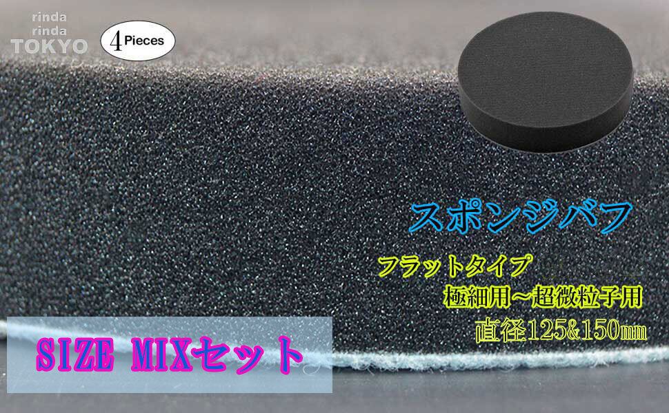 スポンジバフ バフ ウレタンバフ ウレタンスポンジ ポリッシャー 【 4個 150mm×2 125mm×2 】極細用~ 超微粒子用 4ピース 電動 ポリッシャー フラット タイプ マジックテープ 車 ワックス 洗車 ワックスがけ マジックテープ式 研磨 [rinda]