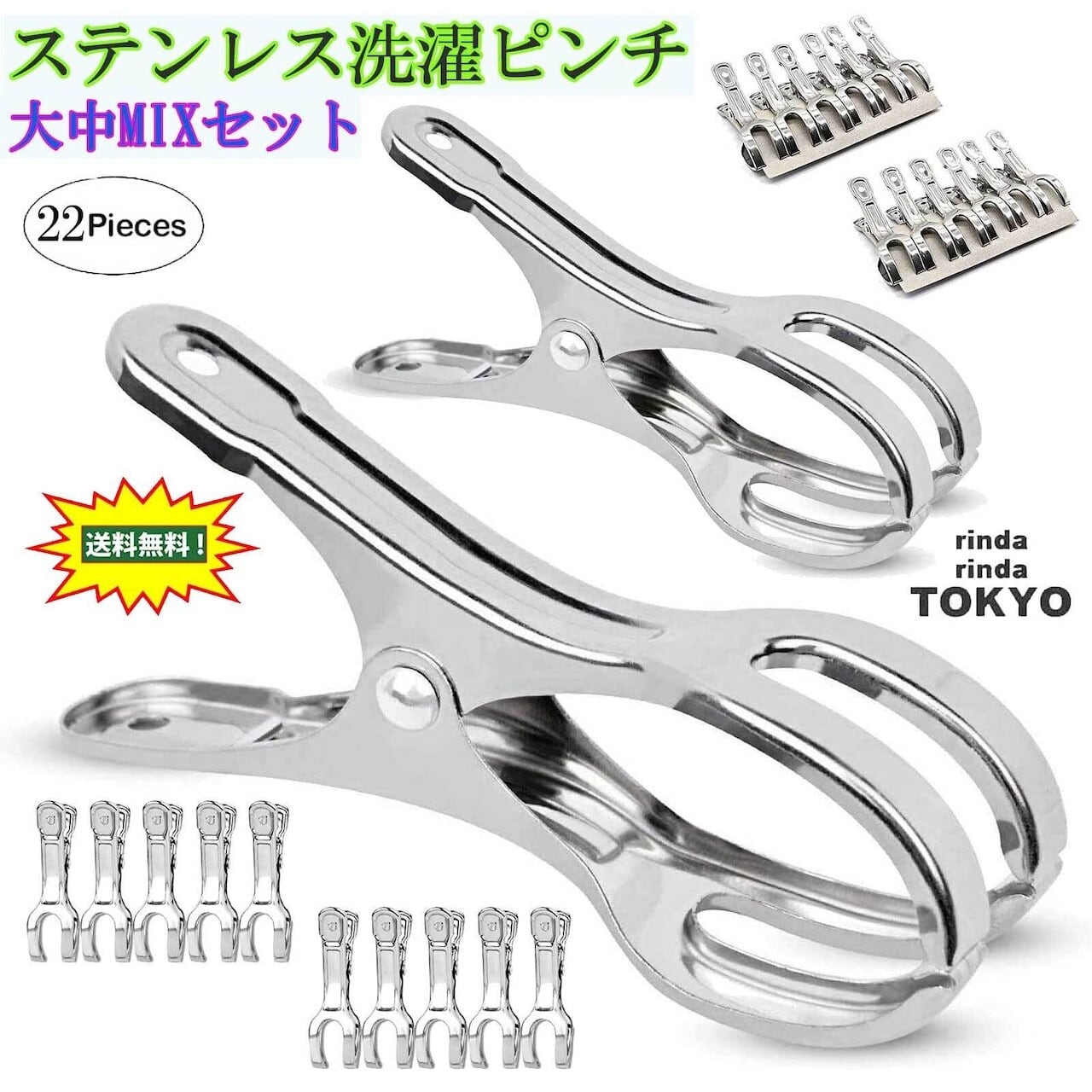 洗濯ばさみ 洗濯バサミ 洗濯 ピンチ 手作業加工済【 22個 大 中 混合 セット 】 ステンレス せんたくばさみ おしゃれ かわいい クリップ 竿用ピンチ 竿止め ピンチハンガー 竿用 洗濯ピンチ 物干し 物干しピンチ 竿ばさみ 洗濯 ばさみ 洗濯 バサミ 強力 錆に強い [rinda]